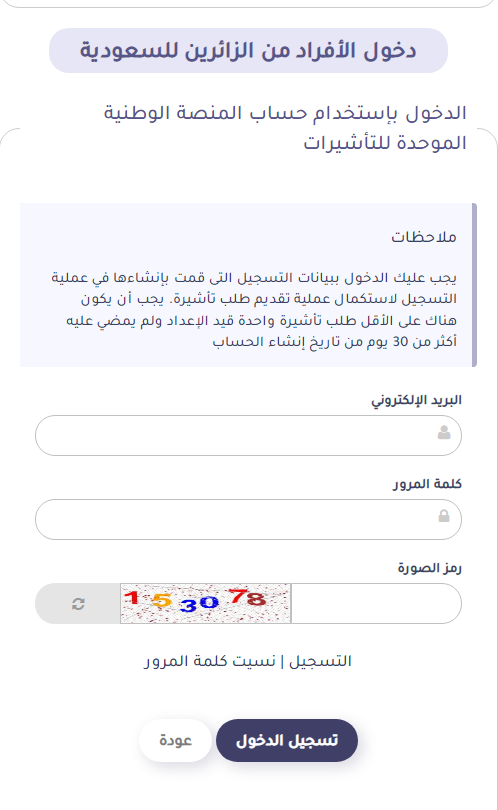 - الدخول إلى منصة التأشيرات الرسمية " من هنا ".