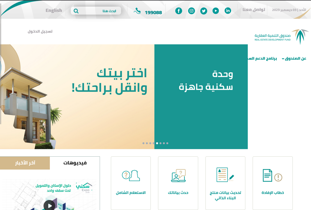 - الوصول إلى الموقع الرسمي لصندوق التنمية العقارية.
