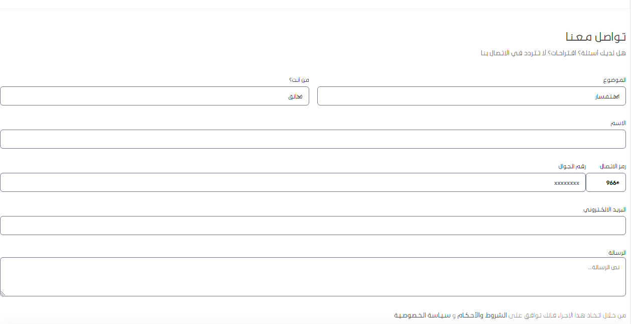 - إدخال رقم التواصل.