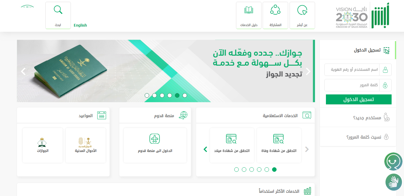 - التوجه إلى منصة أبشر الرقمية التابعة لوزارة الداخلية.