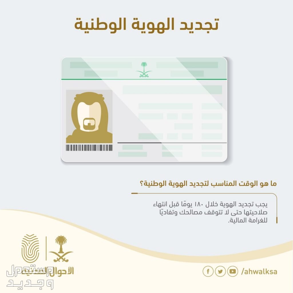- أن يقوم المواطن بتقديم طلب تجديد الهوية خلال 15 يوم من انتهاء صلاحيتها أو فقدانها أو أي شيء يتطلب التجديد.