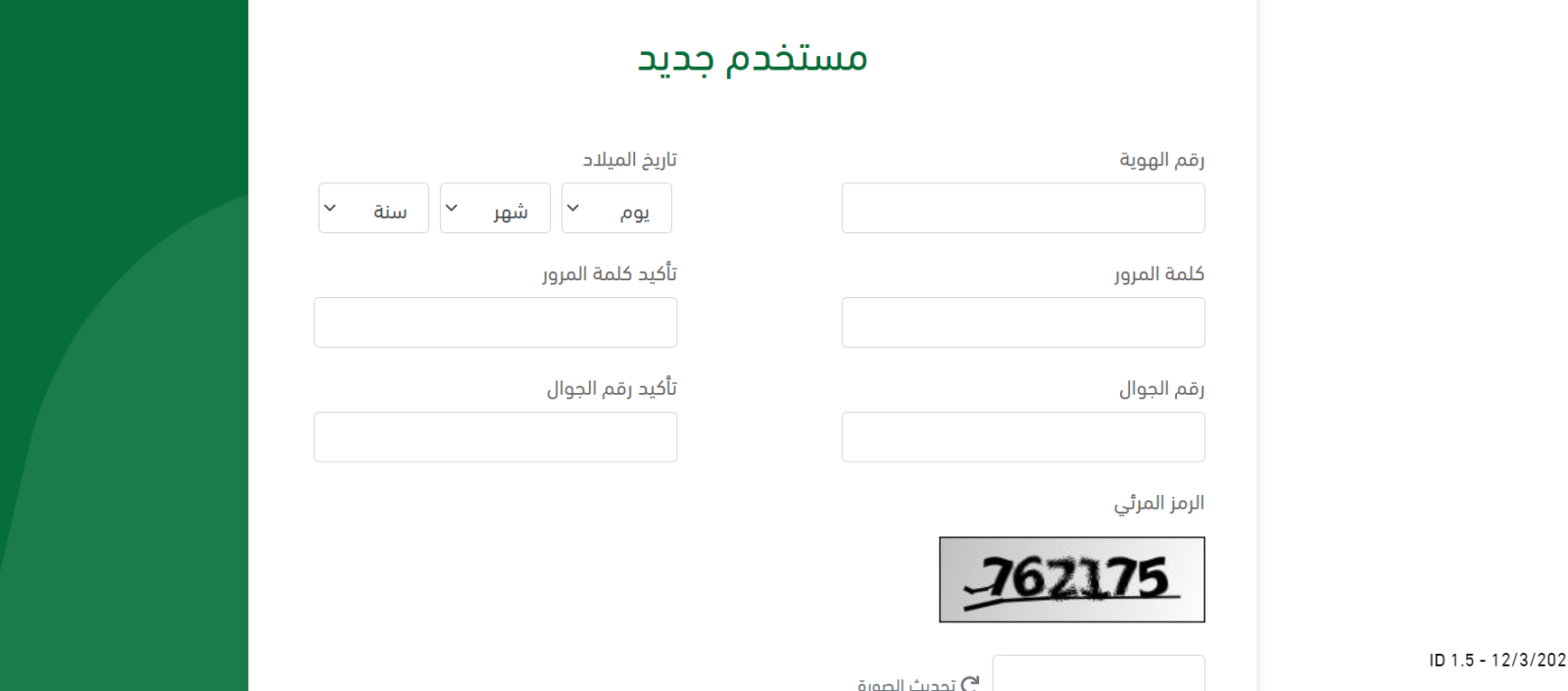 - ادخل رقم الهوية وتاريخ الميلاد الخاص بك، وكلمة المرور ورقم الهاتف، وقم بتأكيد رقم الهاتف وضع الرمز المرئي قفي المكان المخصص له.