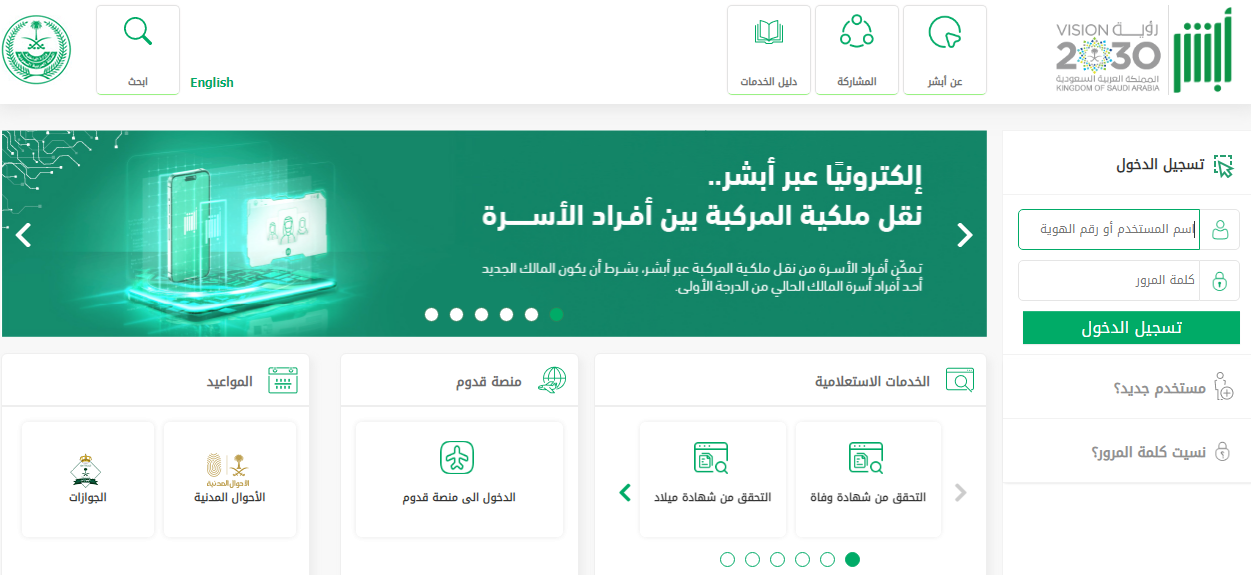 - التسجيل على موقع أبشر وتقديم الطلب.
