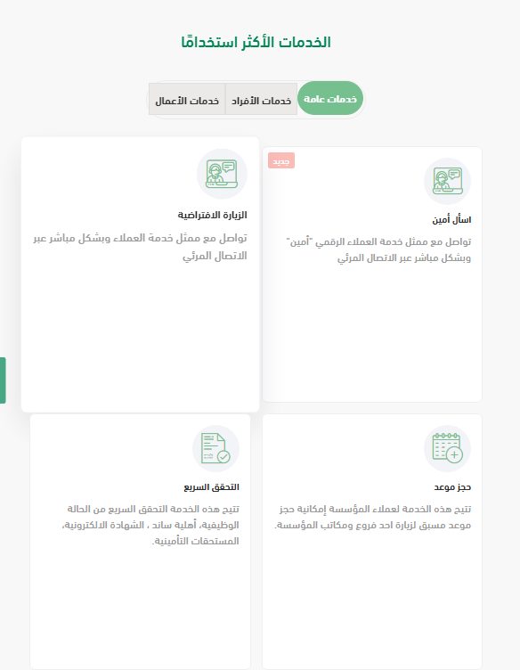 - يتم اختيار خدمات التأمينات الاجتماعية أون لاين.