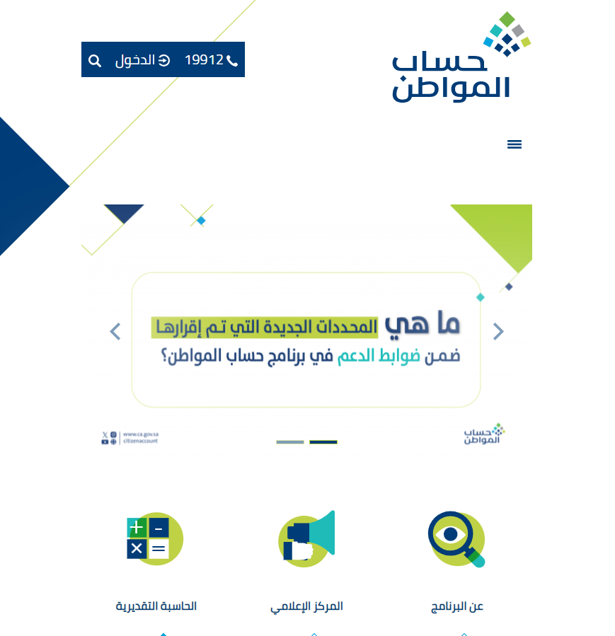 - قم بالدخول إلى الموقع الرسمي الخاص ببرنامج حساب المواطن.