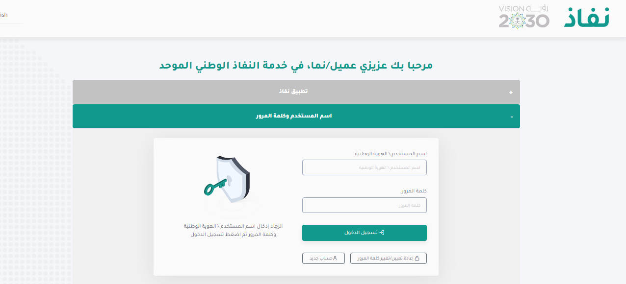 - اضغط على علامة التبويب "الدخول عبر النفاذ الوطني الموحد".