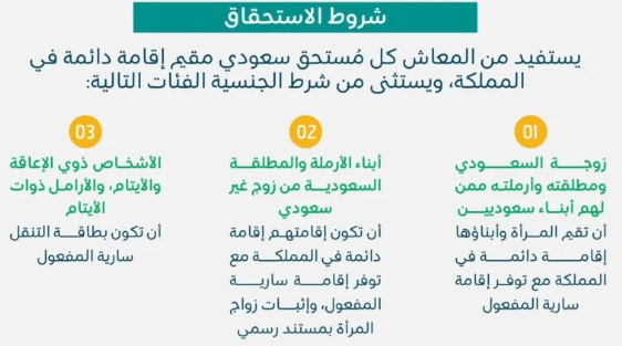 - يتم استثناء زوجة المواطن وأرملته ممن لديهم أبناء، بالإضافة إلى الأرامل ذوات الأيتام والأرملة لزوج غير سعودي وذوي الإعاقة.