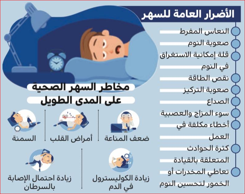 التأثير السلبي للسهر على الصحة الجسدية للإنسان