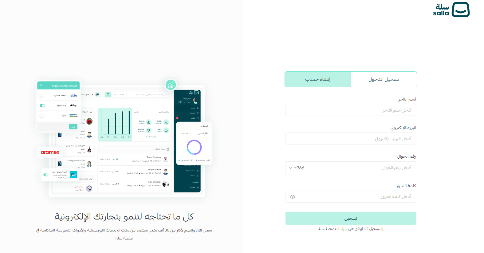 تعتبر منصة سلة من المنصات التي تقدم خدمة إنشاء المتاجر الإلكترونية، إذ يفضلها العديد من التجار، وذلك لأنها تقدم العديد من الباقات المميزة ذات عروض وأسعار تنافسية، كما أنها لا تفرض شروط تعجيزية لفتح المتجر.