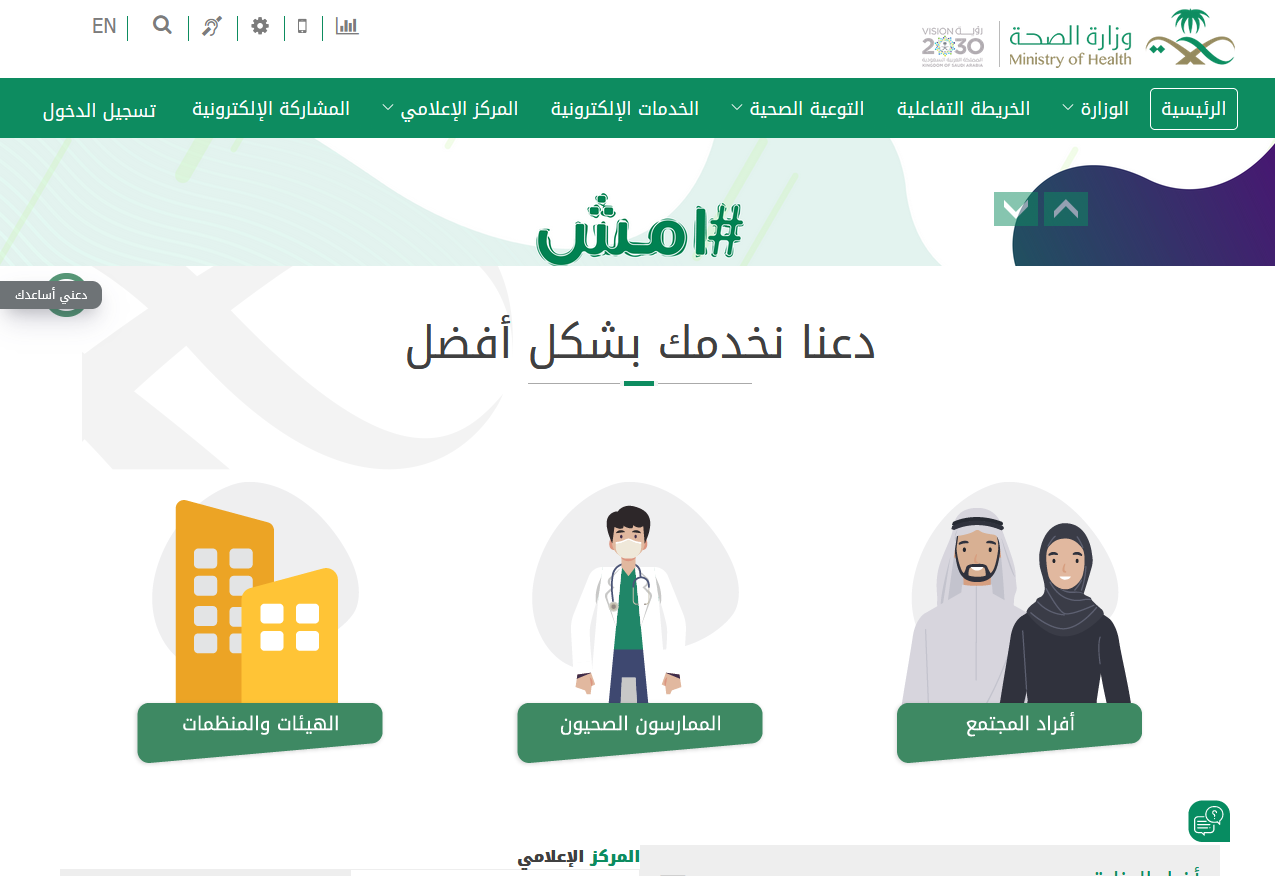 - الانتقال إلى الموقع الرسمي لوزارة الصحة.