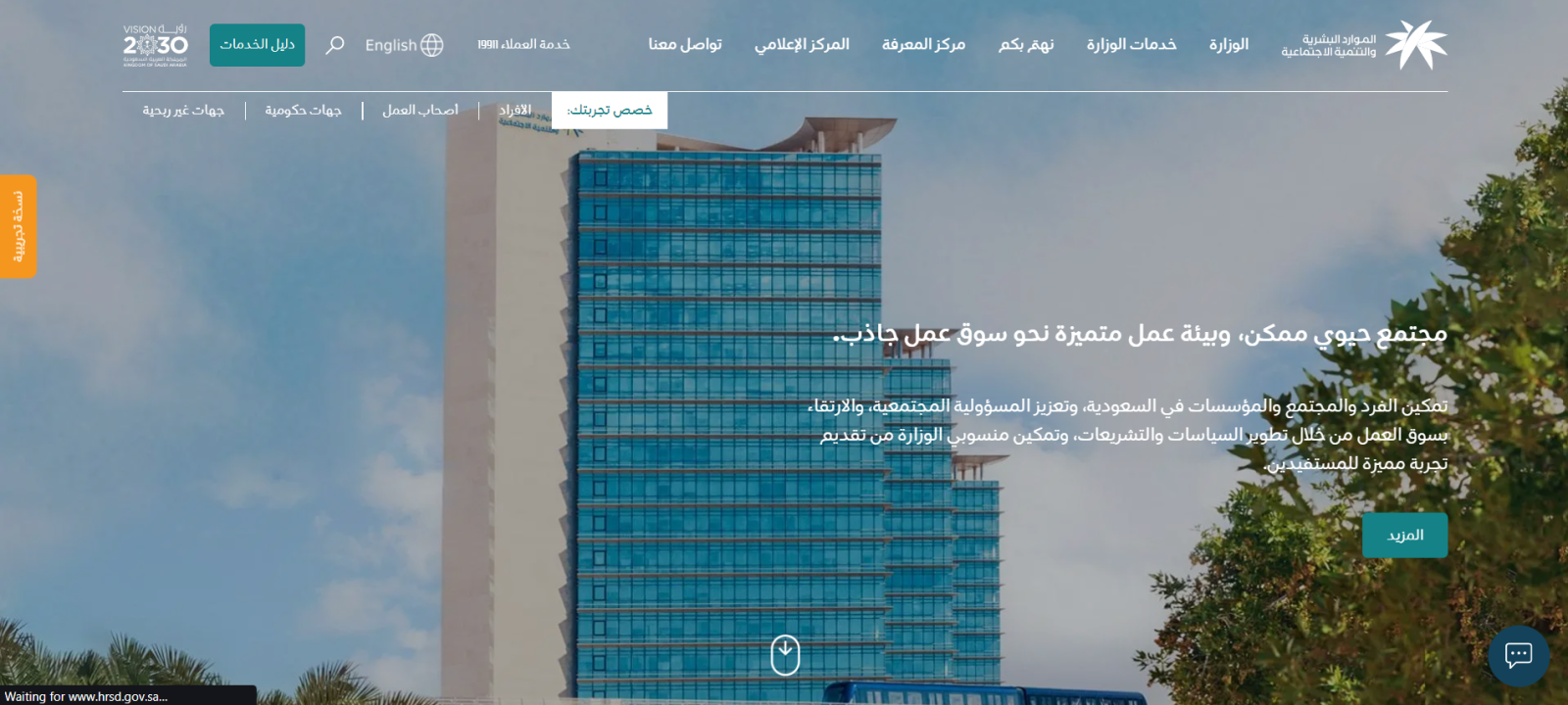 - يبدأ المستخدم بالوصول إلى موقع وزارة الموارد البشرية والتنمية الاجتماعية عبر الانترنت.