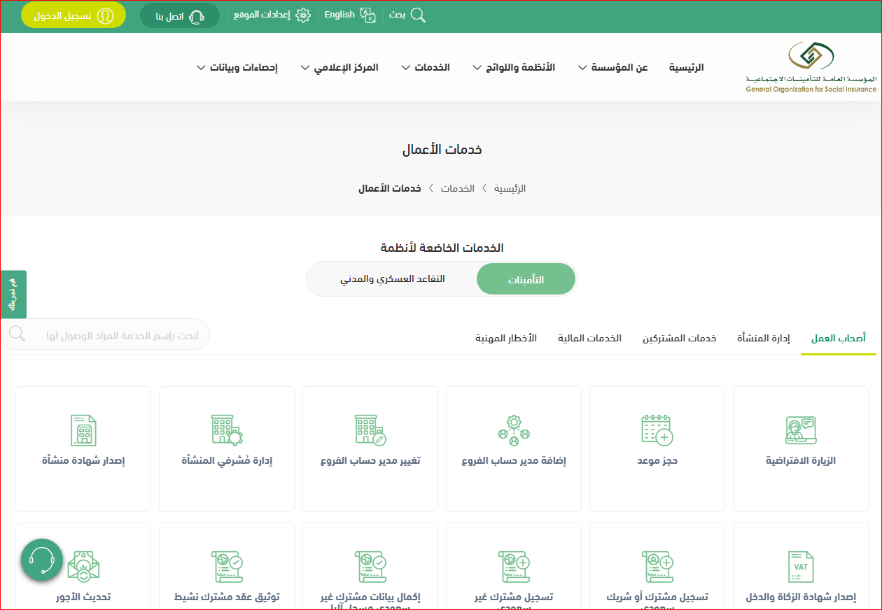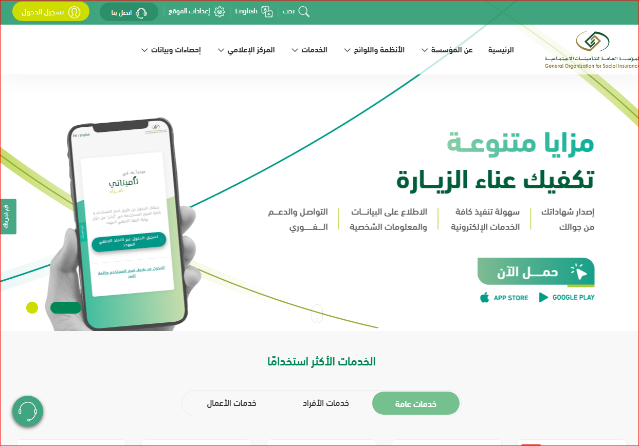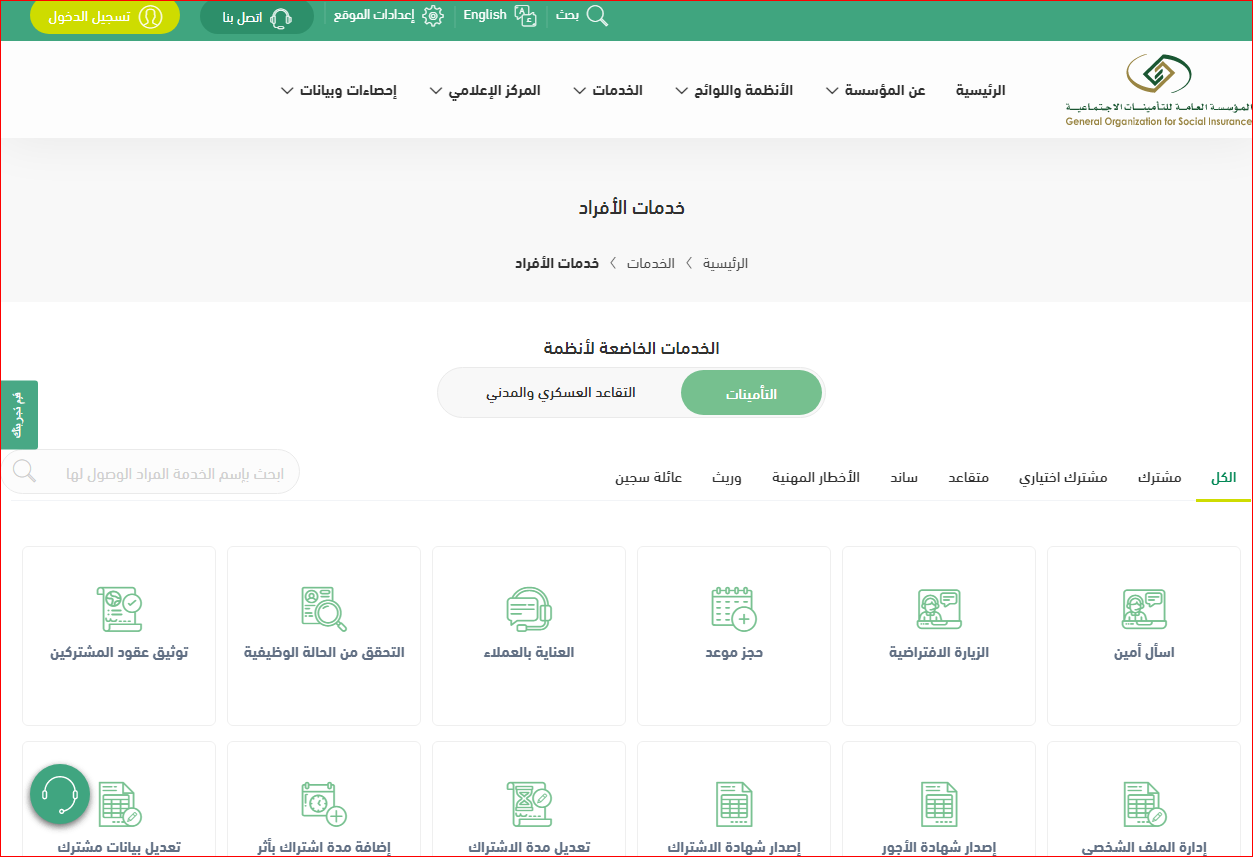 - قم بالدخول إلى الموقع الرسمي لمؤسسة التأمينات الاجتماعية.