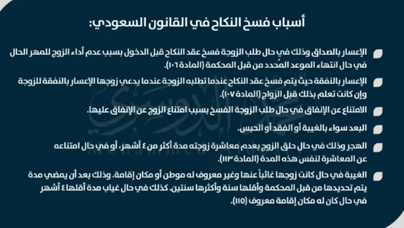 شروط فسخ النكاح في القانون السعودي 1445 تعرف على نصوص المواد وحملها الآن