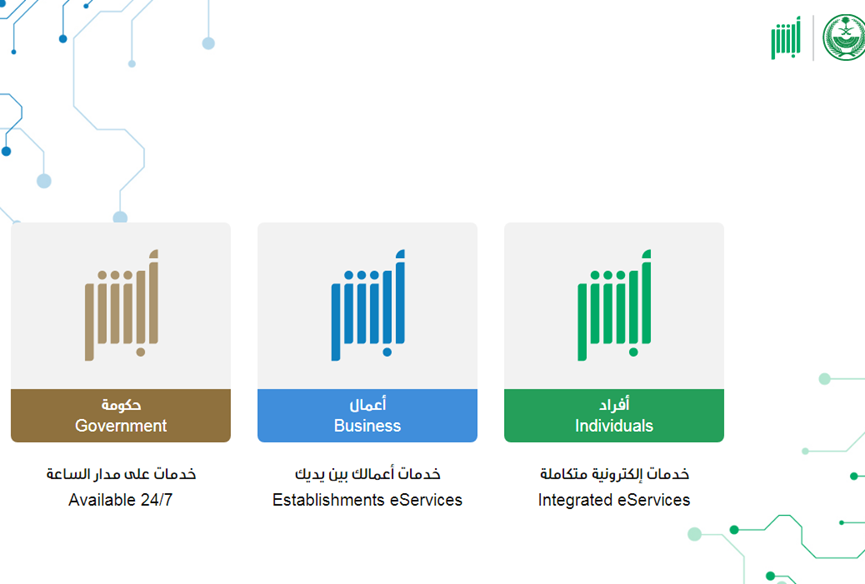 - الولوج إلى الموقع الرسمي منصة أبشر الإلكترونية عبر شبكات الإنترنت