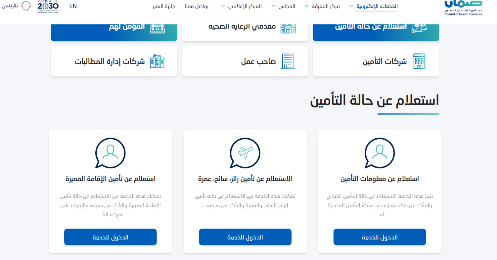 - أول خطوة هي الدخول إلى المنصة الرسمية لمجلس الضمان الصحي التعاوني.