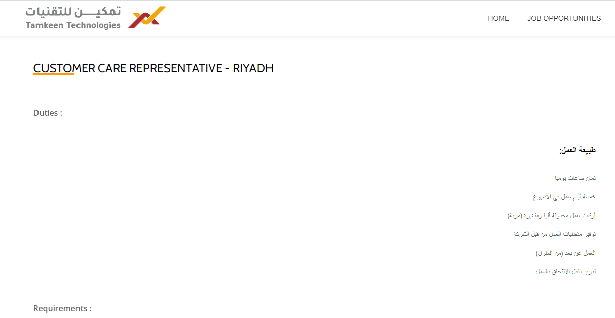 من الشركات التي تقدم فرص عمل عن بعد من المنزل في خدمة العملاء، هي شركة تمكين للتقنيات والتي يمكن التقديم لها بالخطوات التالية: