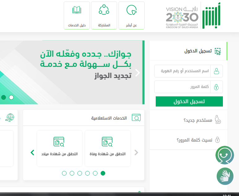- قم بالدخول إلى الموقع الرسمي الإلكتروني أبشر.