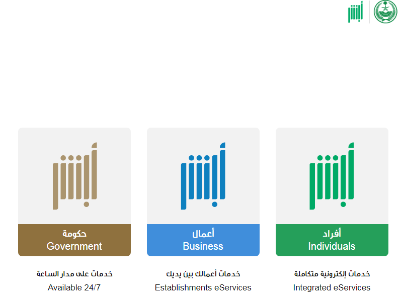 - التوجه إلى موقع منصة أبشر الإلكترونية من خلال الإنترنت.