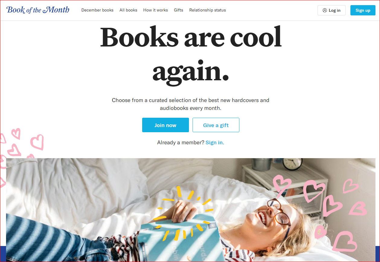 كما من مواقع الكتب المميزة BOOK of the MONTH، حيث يُهدي صاحبه كتاب جديد كل شهر.