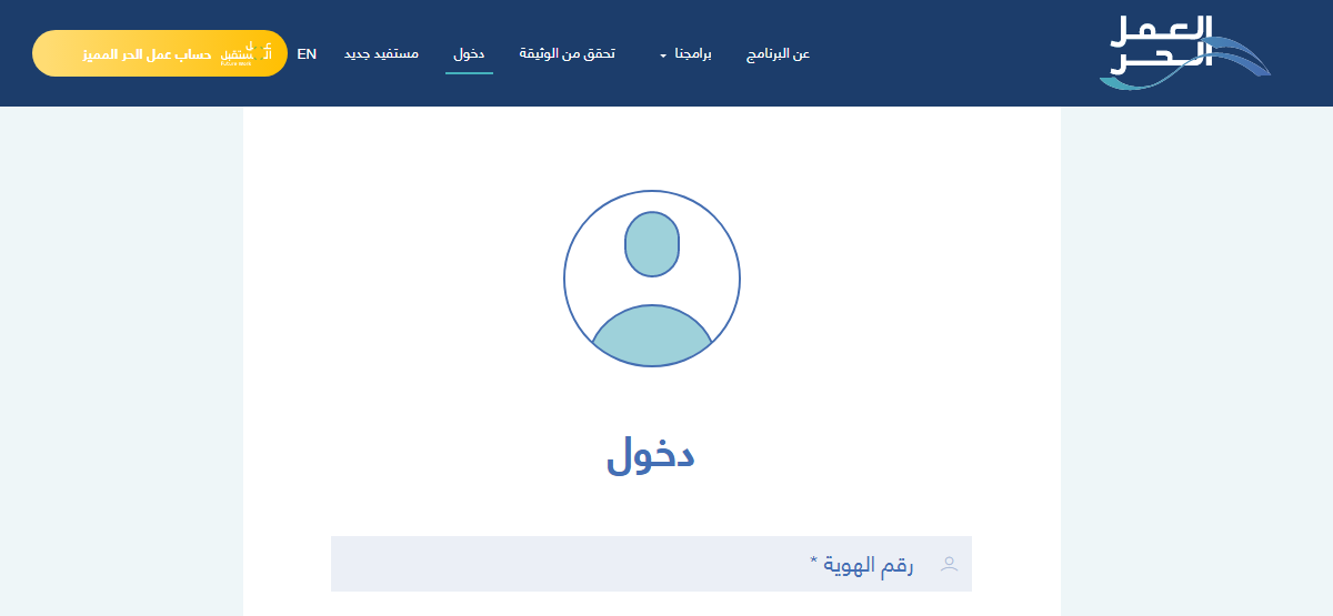 - ادخل إلى الموقع الرسمي الإلكتروني العمل الحر.