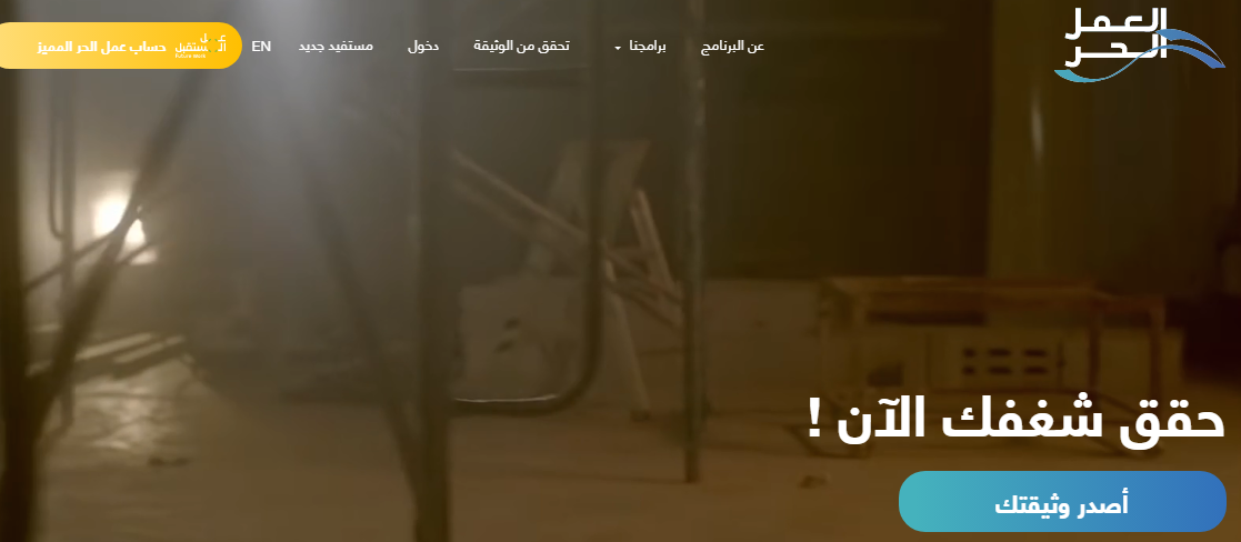 - قم بالذهاب إلى المنصة الرسمية الإلكترونية العمل الحر.