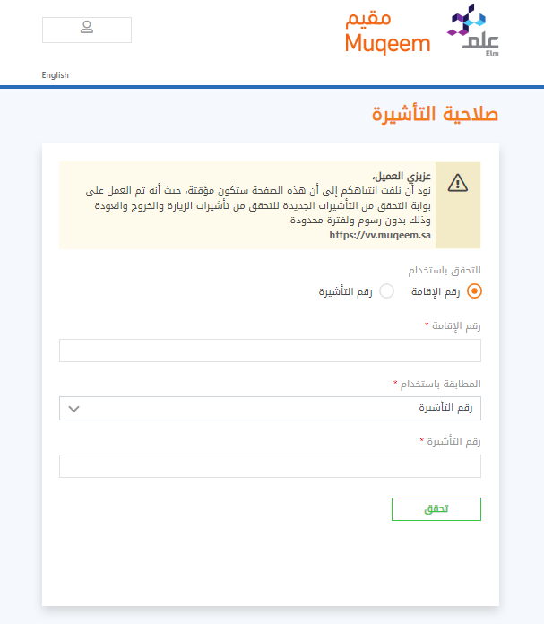 الاستعلام عن صلاحية التأشيرة منصة مقيم