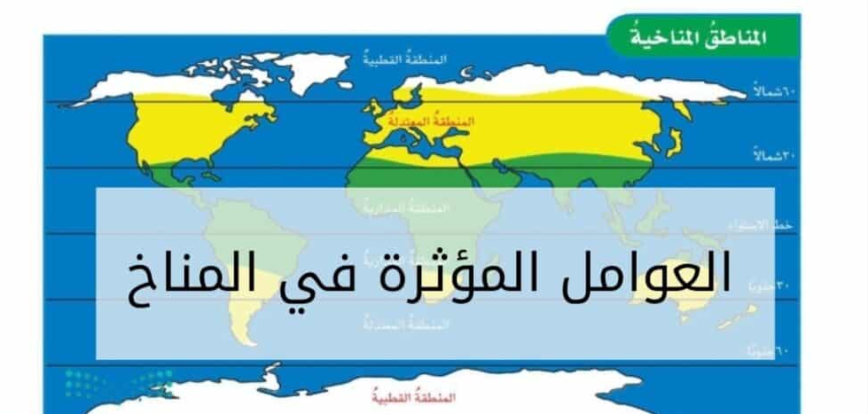 عند الإبحار في دراسة جغرافيا البلاد في أي مكانٍ يتم إيجاد أن كل دولة تتميز بمناخٍ معين، وهنا نودّ التعرف على العوامل المُحددة لهذا المناخ والتي تنقسم كما يلي: