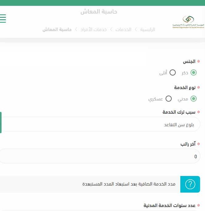 - يتم تعيين عدد السنوات الخاصة بالخدمة المدنية او العسكرية الخاصة بالفرد.