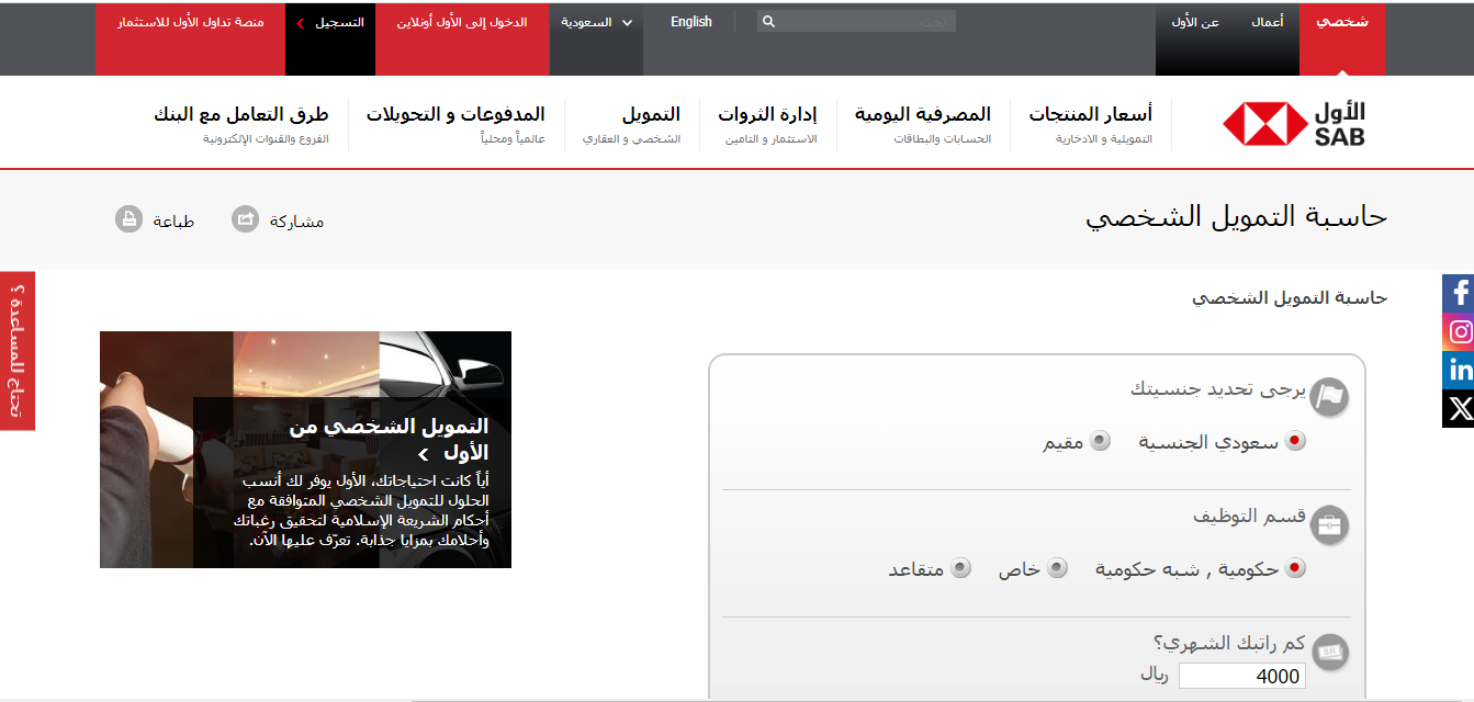 تعرف اكثر على حاسبة التمويل الشخصي ساب 2024 بالسعودية