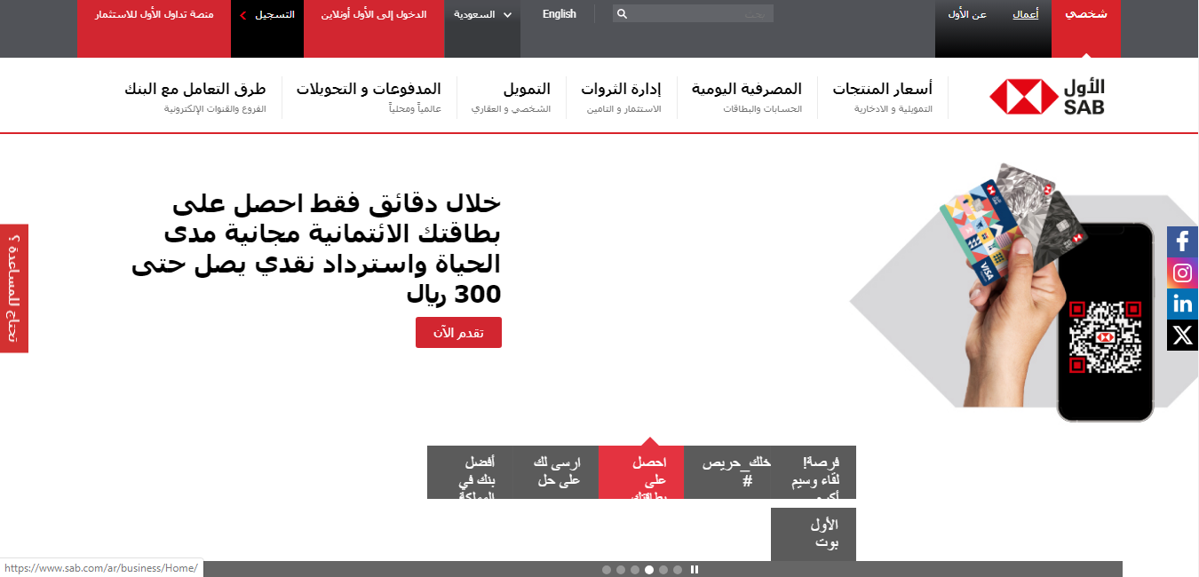 - التوجه إلى الموقع الرسمي لبنك ساب.