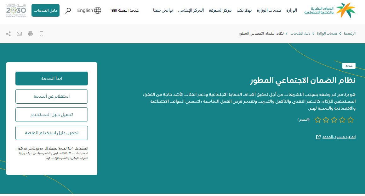 - يجب أن يكون المواطن مسجل في وزارة الموارد البشرية والتنمية الاجتماعية.