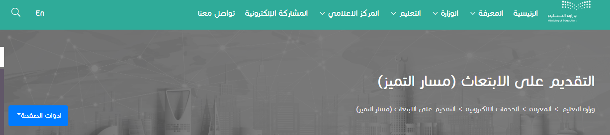 أتاحت وزارة التربية والتعليم السعودية فرصة التقديم على مسار التميز للابتعاث من خلال رابط رسمي سهل ويمكن من خلاله الاستفادة من هذا البرنامج إلكترونيًا دون الحاجة إلى أي تعامل مع جهة رسمية، وهو الرابط الخاص بالموقع الرسمي سفير، ويتم الوصول إليه "من هنا".