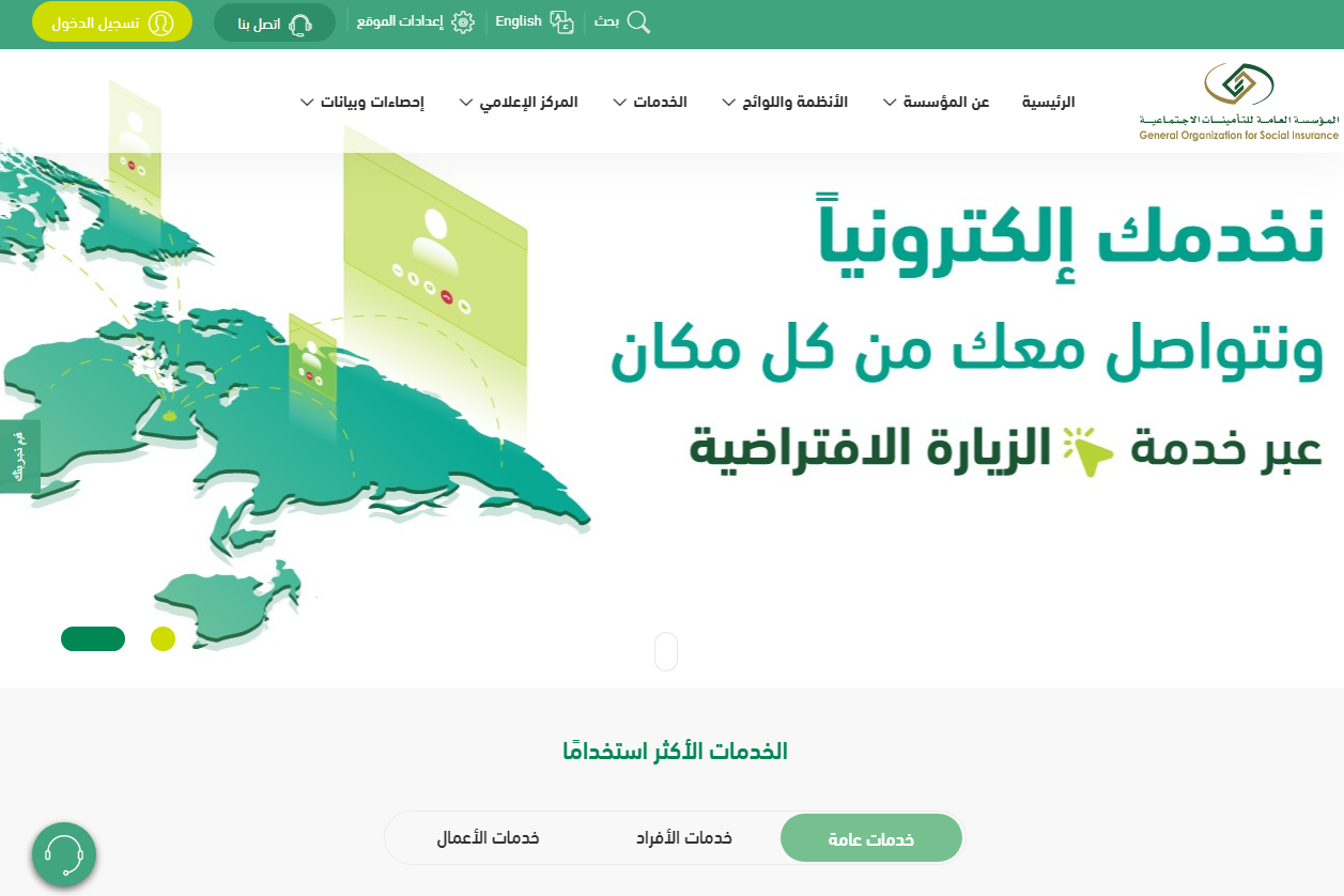 - قم بالدخول بشكل مباشر إلى الموقع الرسمي للتأمينات الاجتماعية "من هنا".