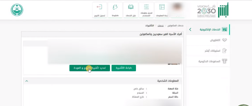 - اضغط على زر تمديد تأشيرة الخروج والعودة.