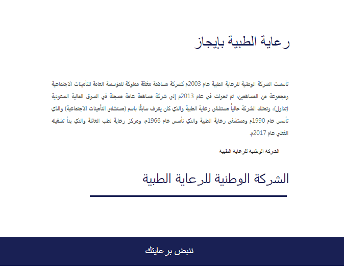 اهم المعلومات عن الشركة الوطنية للرعاية الطبية