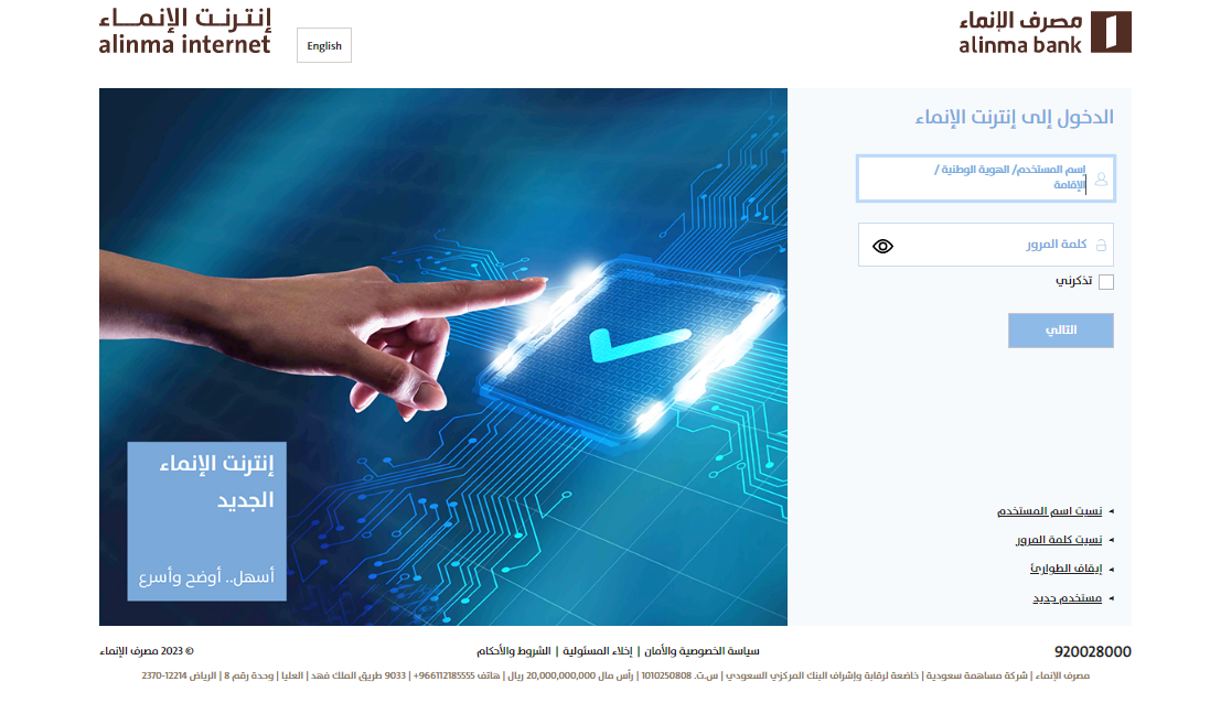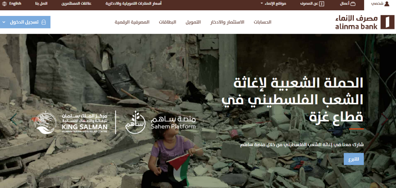 - فتح الموقع الإلكتروني مصرف الإنماء.
