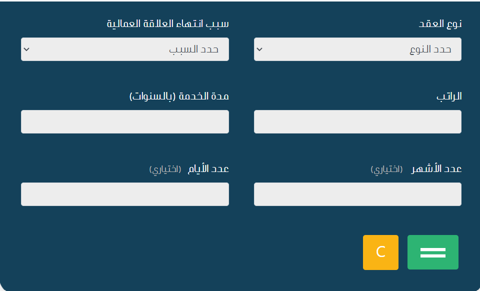 - انقر على علامة "يساوي" التي تتواجد في الزاوية السفلى من الصفحة لعرض القيمة المستحقة لمكافأة نهاية الخدمة الخاصة بك.