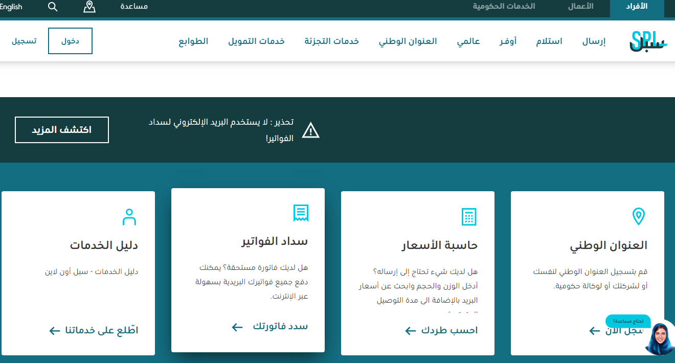 خطوات سداد فواتير الخدمات البريدية