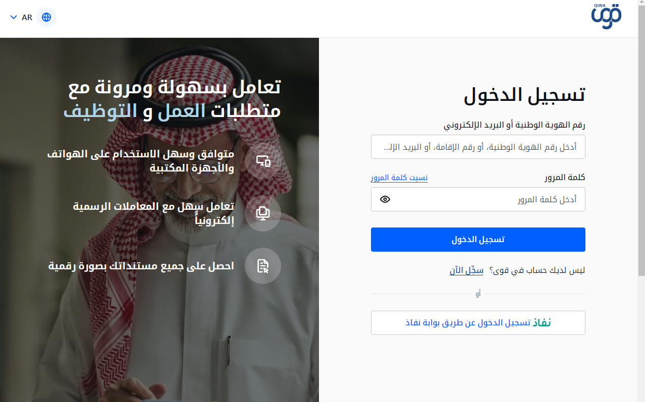 - قمّ بالذهاب إلى الموقع الرسمي الإلكتروني لمنصة قوى "من هنا".