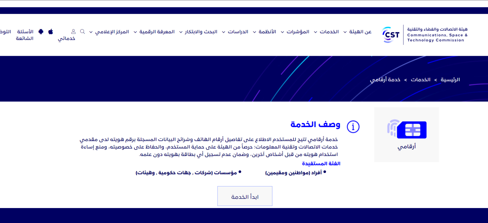 - قم بزيارة خدمة "أرقامي" عبر موقع هيئة الاتصالات وتقنية المعلومات.