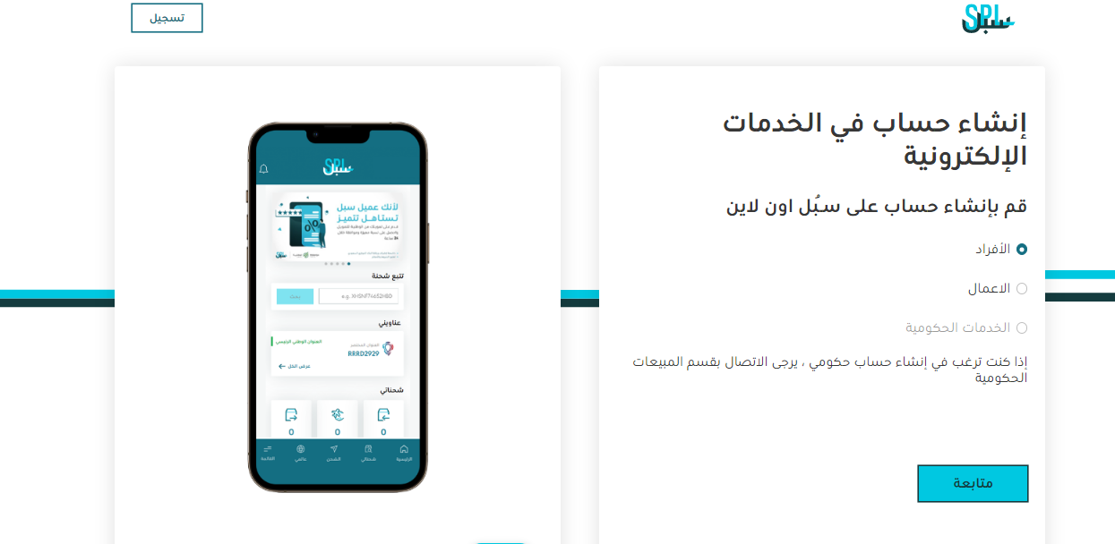 - سيتم الانتقال إلى صفحة أخرى يُطلب فيها إدخال بعض البيانات لإنشاء حساب في سبل.
