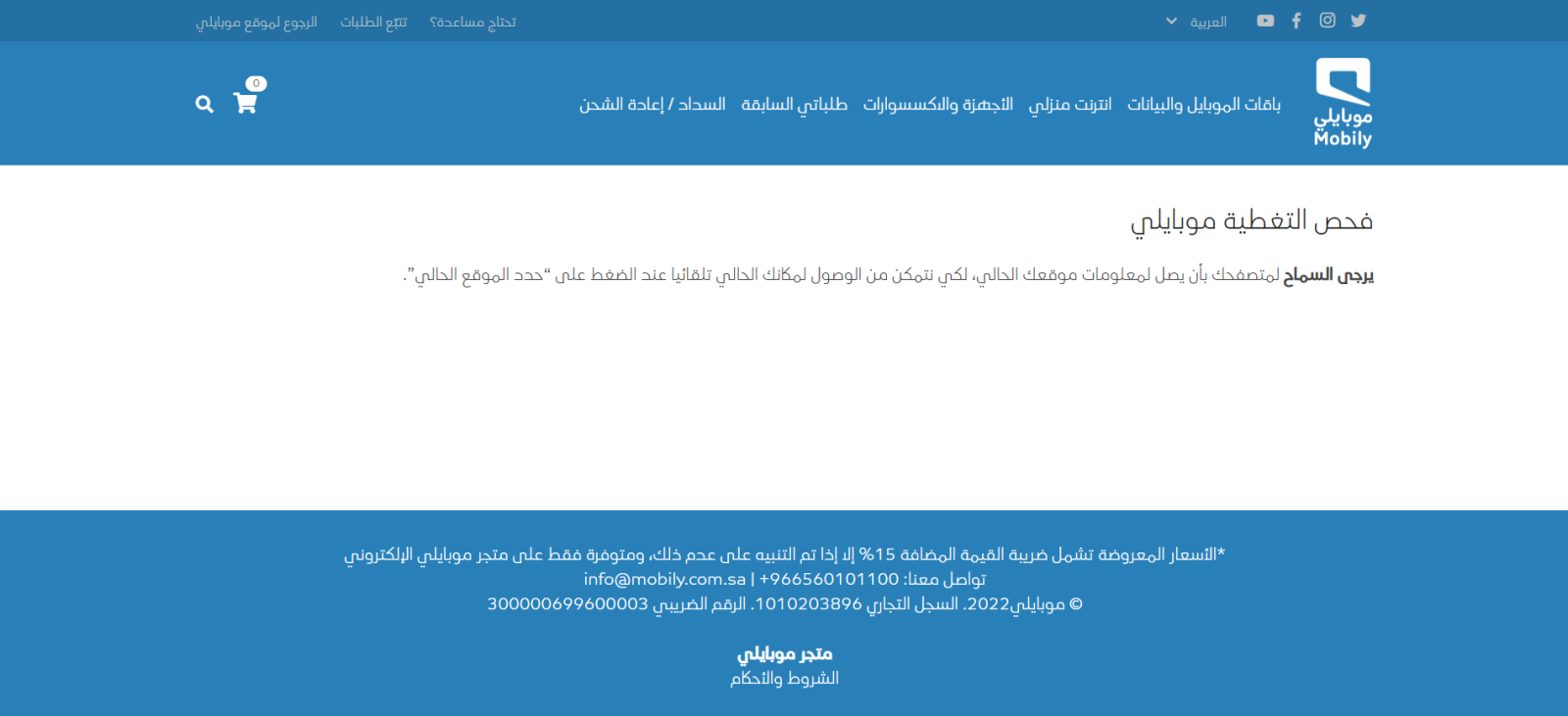 - ابدأ بزيارة الصفحة الرسمية لشركة موبايلي المخصصة لفحص التغطية على الإنترنت.