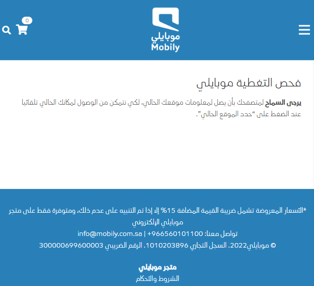 - الضغط على زر الموقع للتحقق من تغطية موبايلي 5G.