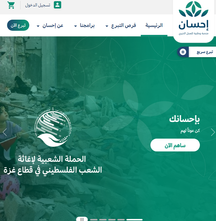 تعتبر منصة إحسان هي واحدة من المنصات الالكترونية التي تسهل على الجميع إمكانية الاستفادة منها بالصورة الكاملة والحصول على التبرعات المميزة والمختلفة المناسبة لجميع الافراد من كافة الجهات في البلاد.