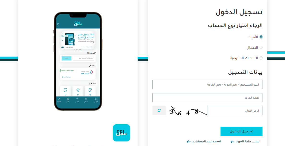 - من ثم إدخال بيانات التسجيل اسم المستخدم أو رقم الهوية أو رقم الإقامة.