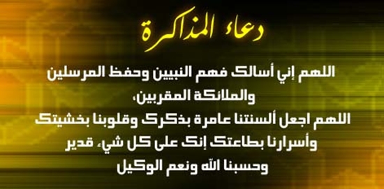 - أسألك يا واسع الجود والكرم أن ترد لي كل ما فهمته وحفظته عند الحاجة له يا رب العالمين فأنت وحدك من تعلم وأنت على كل شيء قدير.