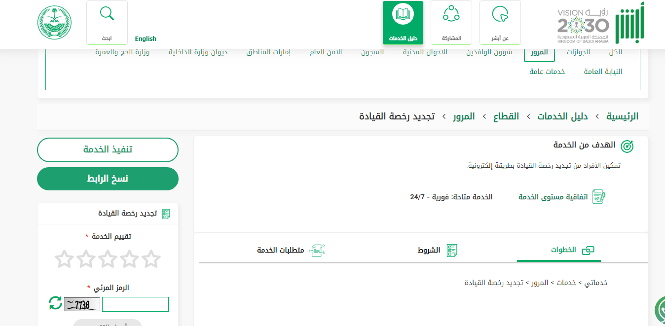 - العثور على خدمة "تجديد رخصة السير" من بين قائمة الخدمات المُتاحة.