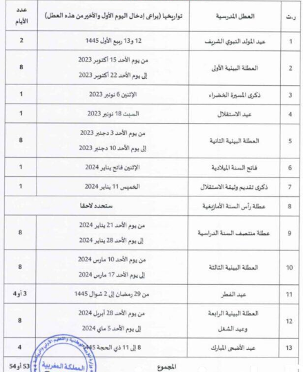 عملت وزارة التعليم في دولة المغرب على توفير العديد من الخدمات التعليمية المميزة والخاصة بها والتي تعتبر من أهمها هي خدمات الجدول المدرسي الخاص بالطلاب والذي يتضمن العطل المختلفة الخاصة بها من أجل التسهيل على الجميع للتعرف عليها.
