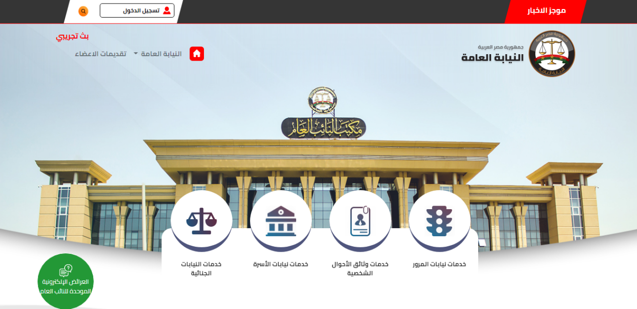 - الولوج إلى الرابط الإلكتروني النيابة العامة المصرية.