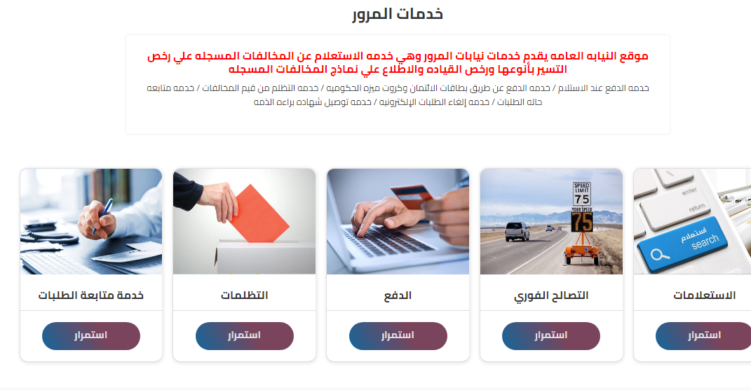 - من الصفحة الرئيسية يتم النقر على أيقونة خدمات نيابات المرور.